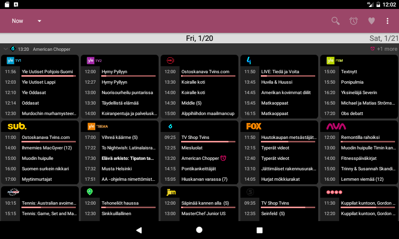 guida TV-programma per la Finlandia canali televisivi pubblici. Mostra le informazioni sul programma fino a una settimana per il futuro. liste di programma di lavoro anche in assenza di connessione di rete se li naviga prima.