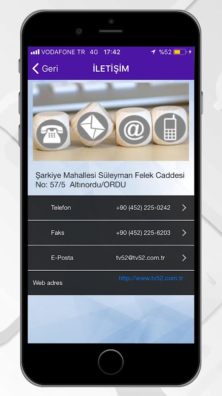 28 Kasım 2008 tarihinde Turksat 3-A uydusuna yayın hayatına başlayan Ordu TV 52; halen Ordu’ da yaşayan 700.000; diğer kentlerde yaşayan yaklaşık 800.000 ve yurtdışında bulunduğu tahmin edilen yaklaşık 300.000 Ordulu için kuruldu.