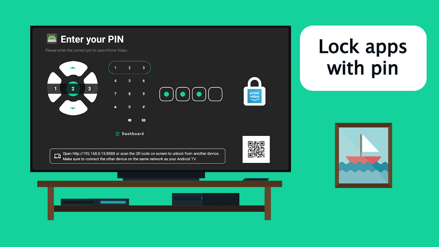 🔐 Blocca le app o Android TV con un PIN di 4 cifre.