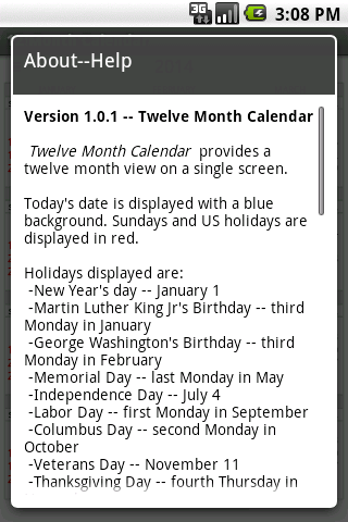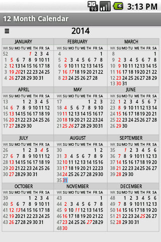 Il calendario dei dodici mesi è un calendario di "ritorno alle origini" che fornisce una visualizzazione di dodici mesi dell'anno su un'unica schermata.