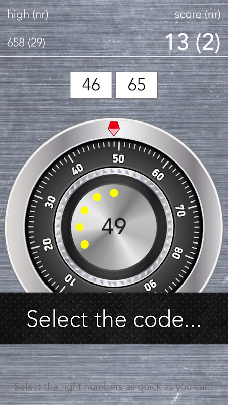 Crack the code by twisting the big knob to the right numbers (and release when you have selected the number). But be fast!