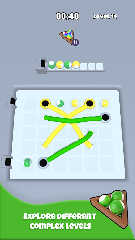 Con ogni nuova sfida, i nodi diventano più complicati e le palline più sfuggenti. Riuscirai a districare il caos e padroneggiare l'arte dello smistamento?