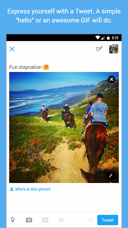 Watch live sports, entertainment, and news like never before on Twitter for Android TV. Live stream the show for free and get the full story with all the Twitter commentary. See what everyone is talking about with expert analysis, on the ground exclusives, bonus video feeds, and celebrity buzz. Get the best of Twitter today plus top global Vine videos and Periscope broadcasts, all without logging in. No account required.