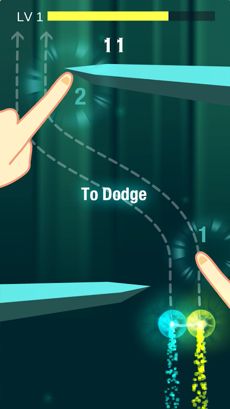 Two balls that will move to the left aside when you tapping the left side of the screen, In contrary,they move to the right.Two balls can be connected by lightning and moved to the left and right sides respectively when you hold on two directions