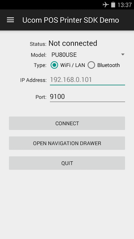 Esempio di applicazione per i dispositivi Android collegamento Ucom Stampante POS.