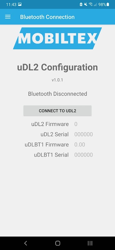software di configurazione per Mobiltex corTalk® uDL2 quando si utilizza un programmatore Bluetooth.