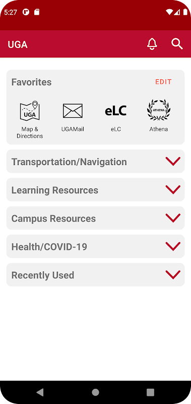 L'UGA Mobile App è una collaborazione tra il governo Associazione Student (SGA) e Enterprise Information Technology Services (EITS).