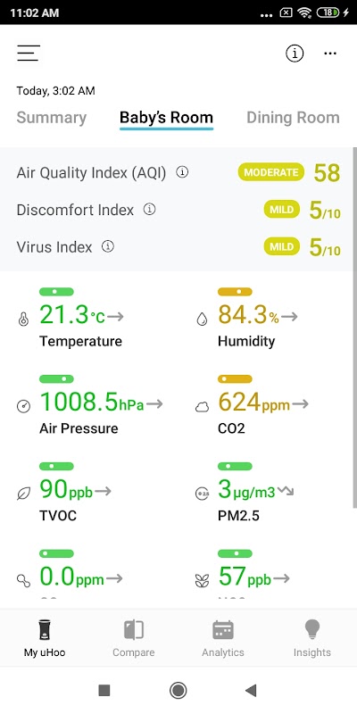 Mantieni il controllo del tuo ambiente domestico 24 ore su 24, 7 giorni su 7, associando il tuo uHoo Smart Air Monitor con l'app uHoo. Con uHoo, ottieni i dati sulla qualità dell'aria interna più completi e accurati disponibili in tempo reale e presentati in un semplice formato con codice colore. Misura e tiene traccia di temperatura, umidità, pressione dell'aria, anidride carbonica, TVOC, polvere (PM2,5), monossido di carbonio, biossido di azoto, livelli di ozono e indice di virus: tutti i fattori importanti della qualità dell'aria interna che influiscono sulla salute, il comfort, e produttività.