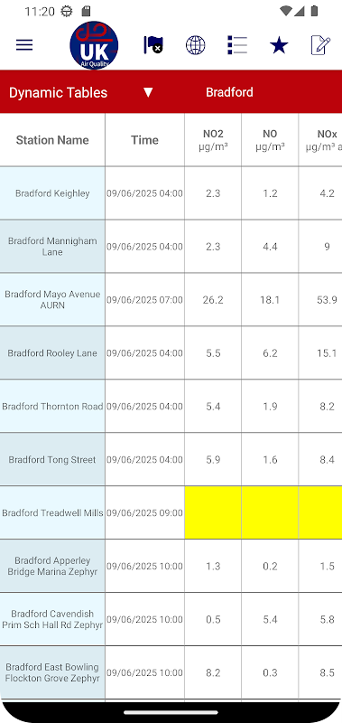 Envista UKAir Quality Now applicazione mostra le misurazioni on-line di qualità dell'aria in tutto il Regno Unito.
