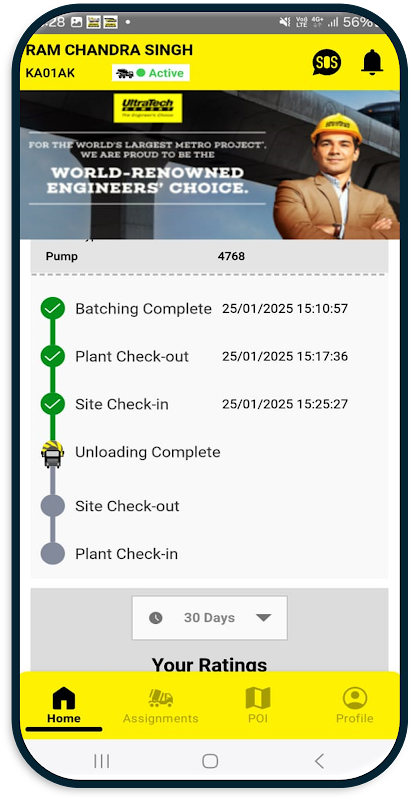 I proprietari e gli autisti partner di Transit Mixer (TM) forniscono il collegamento cruciale dell'ultimo miglio per garantire consegne puntuali e complete di calcestruzzo. Per supportarli, presentiamo con orgoglio UltraTech TMPulse, un potente strumento digitale progettato esclusivamente per i proprietari di TM e gli operatori associati a UltraTech RMC per migliorare la navigazione, l'efficienza e la gestione degli incidenti.