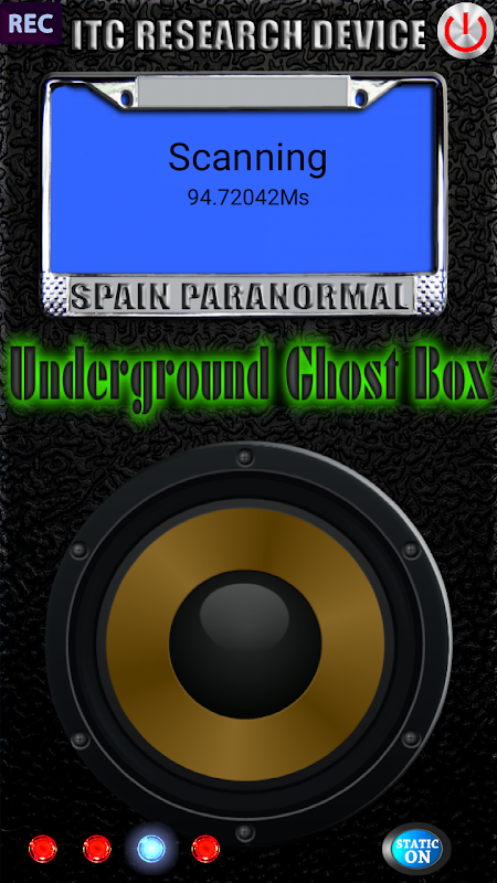 This Ghost Box uses only Spanish reversed audio set of banks in main function mode, and scan rate is set by the sensors readings of your phone (magnetic compass, pitch and roll) or in manual mode with plus and minus buttons if device dont have magnetic compass.