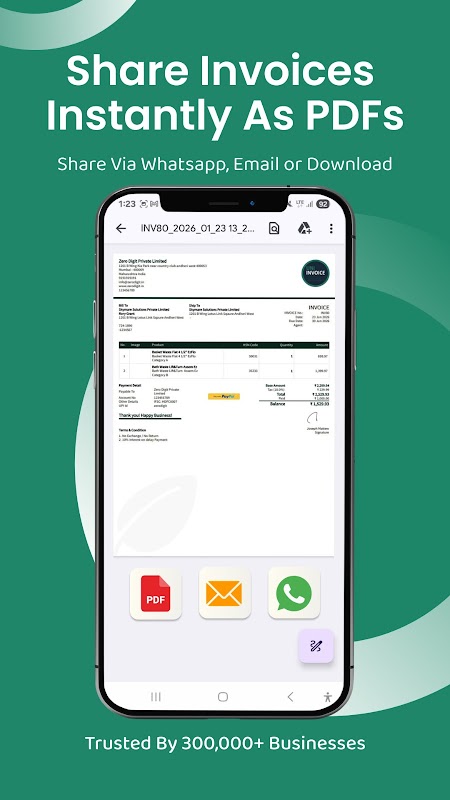 Uni Invoice è anche un'app per fatture elettroniche e fatturazione GST, che ti consente di aggiungere automaticamente la GST per articolo o sul totale. L'app supporta anche la verifica delle fatture elettroniche, sconti, diversi formati fiscali e opzioni per la creazione di fatture fiscali.