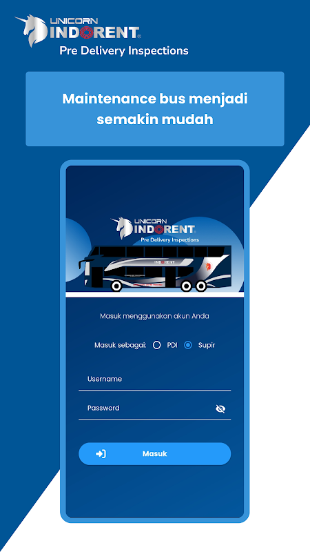 Unicorn PDI è qui per rendere più facile per i meccanici mantenere gli autobus Unicorn Indorent. C'è una funzione in cui i meccanici possono controllare e registrare le condizioni e le condizioni dell'Unicorn Bus, in modo che la qualità e la manutenzione dell'autobus siano massimizzate durante il funzionamento.