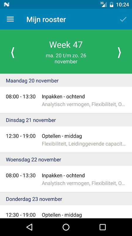 In één klap kun je zien wanneer je in de week bent ingeroosterd. Dien je als medewerker eerst je rooster goed te keuren? Met één druk op de knop keur je je hele rooster voor de geselecteerde week goed. Zo simpel is het.