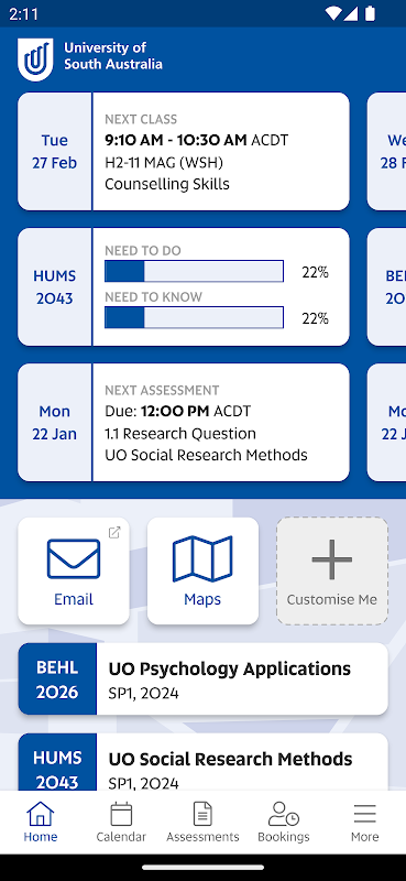 L'App UniSA ti consente di connetterti a una gamma di servizi e risorse rilevanti per il tuo studio in UniSA. Scopri di più sui tuoi corsi, accedi al tuo orario, orientati nel campus, accedi ad app utili, trova un PC, tieniti in contatto con ciò che sta succedendo, fornisci feedback e dai suggerimenti su come UniSA può migliorare i propri servizi e strutture.