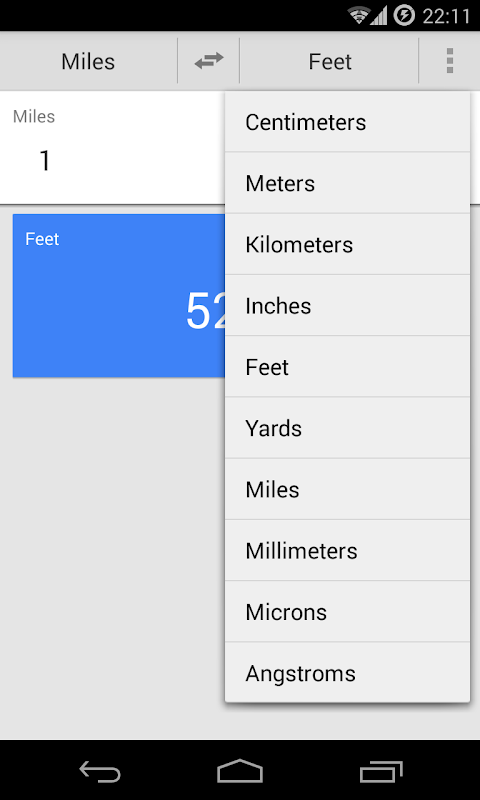 L'applicazione supporta free-form di battitura, quindi sentitevi liberi di chiedere che domande come "Quanti metri in un miglio?", "Converti 15 cucchiaino di cucchiai", e anche "1 USD per BTC". Tutto tranne le conversioni di valuta funzionerà offline. Hit Convertire anche per altre opzioni.