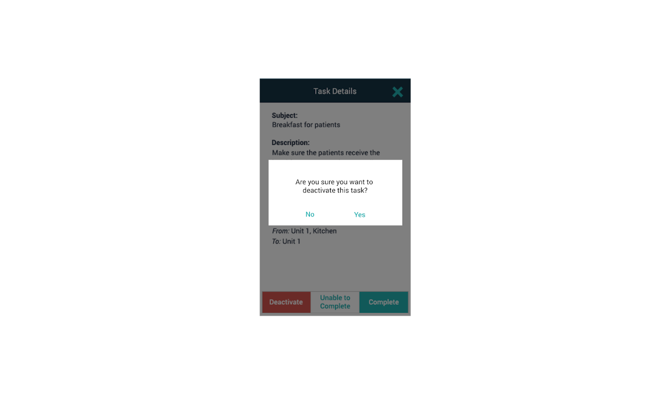 Consente la visualizzazione e la gestione delle attività da parte del personale da qualsiasi luogo, con l'app mobile Unite Task per dispositivi intelligenti Ascom Myco e Android.