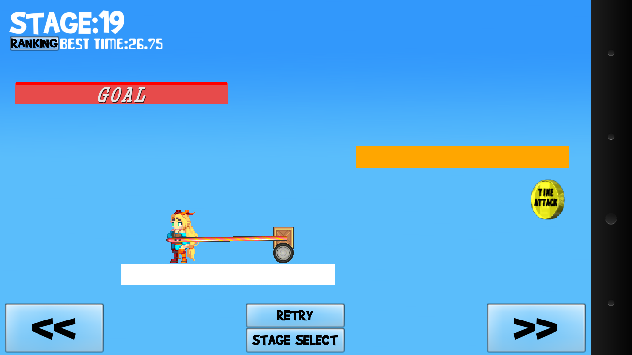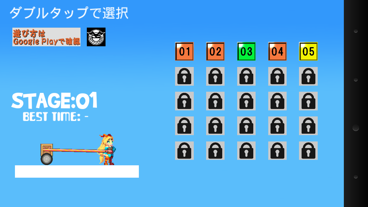 ステージの選択画面で、各ステージに触れるとベストタイムが表示されます。