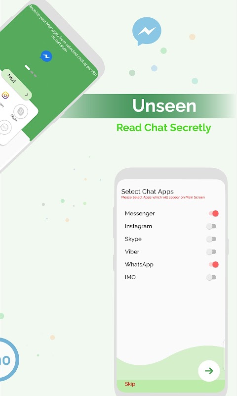 Hai bisogno di leggere il messaggio ma non vuoi che lo stato venga visualizzato dal mittente? Con Unseen No Last Read, il mittente del messaggio non saprà che stai leggendo i loro messaggi in molte app di chat tra cui WhatsApp, Messenger, Instagram, Skype, Facebook, Viber o IMO ecc. Quindi, senza aprire le app di social chat menzionate, l'utente può visualizzare tutti i messaggi da Unseen No Last Read stesso.