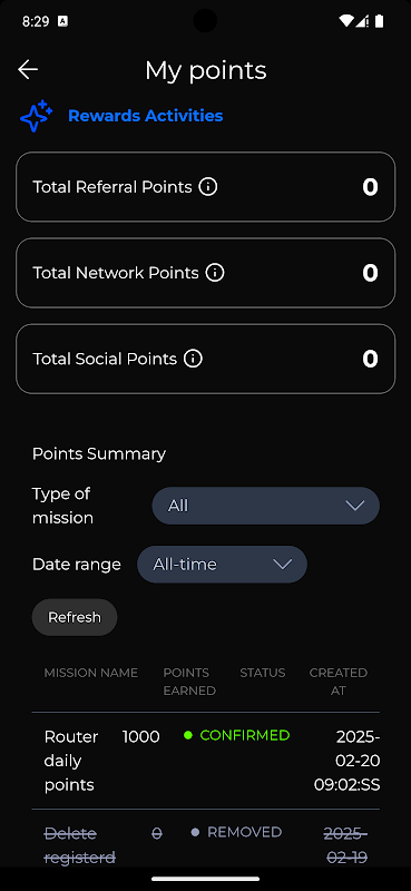 Guadagna punti per il tuo contributo: ricevi premi per la registrazione dei router, la verifica della qualità della rete e il referral di amici.