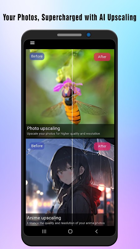 • Ottimizzato per dispositivi mobili: la tecnologia AI avanzata garantisce prestazioni fluide sui dispositivi mobili, rendendo accessibile l'upscaling di alta qualità anche in movimento.