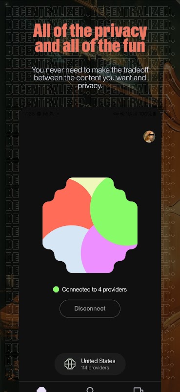 URnetwork utilizza VPNService per instradare il traffico del tuo dispositivo verso i dispositivi del provider. Il traffico viene crittografato utilizzando un protocollo open source basato sugli standard web. Inoltre il traffico viene reso anonimo utilizzando il protocollo URnetwork.