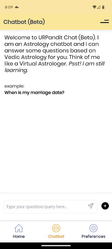 Sia che tu stia cercando una direzione, che desideri cronometrare le cose nel modo giusto o che ti prepari per ciò che ti aspetta, il chatbot AI di URPandit ti mette la saggezza delle stelle a portata di mano.
