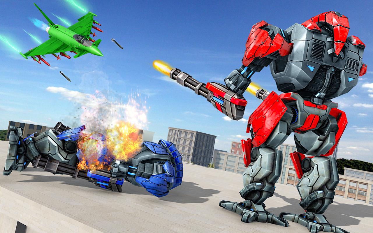 Come forward to destroy evil cars in army robot war with the special use of military multi robot transforming to control all stinging actions of evil forces of transformation tank games. Utilize the best measures of robot shooter games to launch severe action against all stakeholders of transforming robot games. Don’t feel fear of any tough situation of robot tank wars as you have open ended access to all futuristic robot transform features of transmutation jet games which enable you to provide real challenge to these pinching creatures of army tank games. This is one of the best new transformation games 2019 as you have all double game playing modes of robot war games available in this transform robot battle of transformation fighting games.