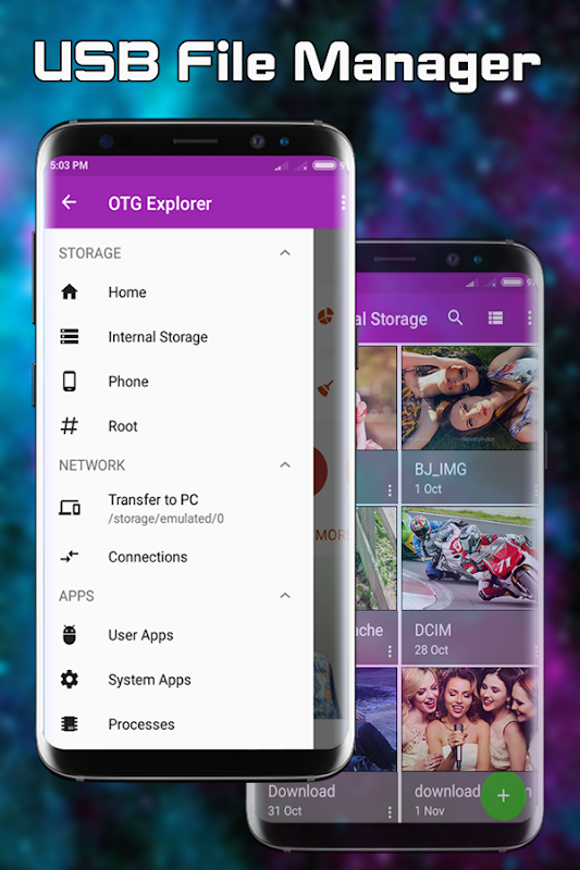 File Browser:- USB OTG File Explorer helps you manage all your files efficiently! With an intuitive interface, File Manager allows you to handle any file or folder whether they are stored in your device, microSD card, or cloud storage accounts. also provided amazing differant folder display view.