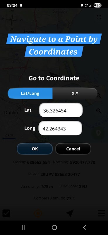 La mappa UTM mostra le coordinate latitudine-longitudine, MGRS e UTM X,Y sulla mappa. Puoi vedere le tue coordinate o ottenere le coordinate di qualsiasi luogo sulla mappa. L'utente può vedere la precisione del GPS, dell'azimut della bussola e della bussola sulla mappa. Visualizza la zona UTM in 6 gradi. Le coordinate si basano sulla proiezione WGS84. È possibile memorizzare o eliminare un punto. L'app può navigare verso un punto, visualizza la distanza in diverse unità. È possibile visualizzare l'elenco delle coordinate in latitudine, longitudine e UTM. Puoi condividere le tue coordinate in latitudine, longitudine o UTM. Ha una modalità a schermo intero per visualizzare la mappa a schermo intero. Puoi ottenere qualsiasi informazione sulle coordinate in qualsiasi punto della mappa e puoi salvare luoghi.