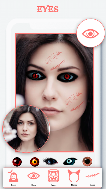 Vampire Photo Editor has a lots of vampire stickers for the best Vampire Face: