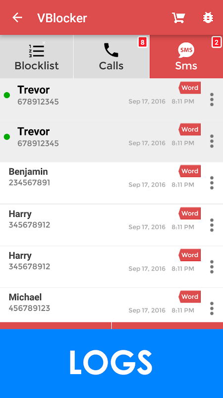 smettere di chiamanti di spam chiamate indesiderate e bloccare con pochi clic e colpi con il più chiamata popolare e SMS blocker Android app - VBlocker. Questa applicazione altamente user-friendly è stato sviluppato per essere il#1bloccante chiamata e sms blocker nel mercato.