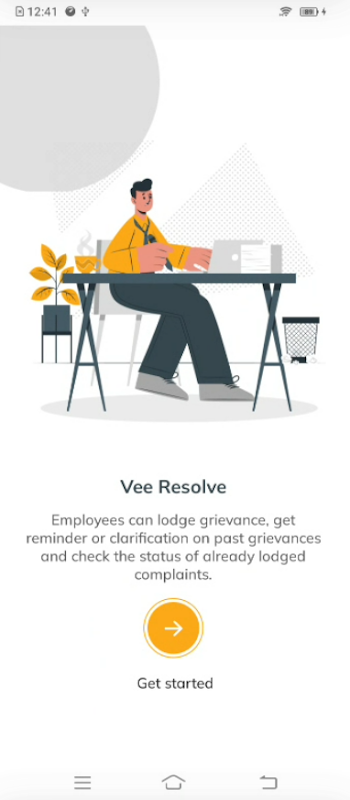 L'app Vee Resolve utilizzata per sollevare la richiesta di reclamo da parte dei dipendenti.