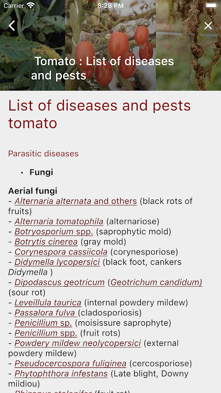 Utilizzando questo strumento potrai identificare per immagine le malattie delle verdure, del melone, del pomodoro, della zucca e delle insalate e acquisire le conoscenze per controllarle meglio.