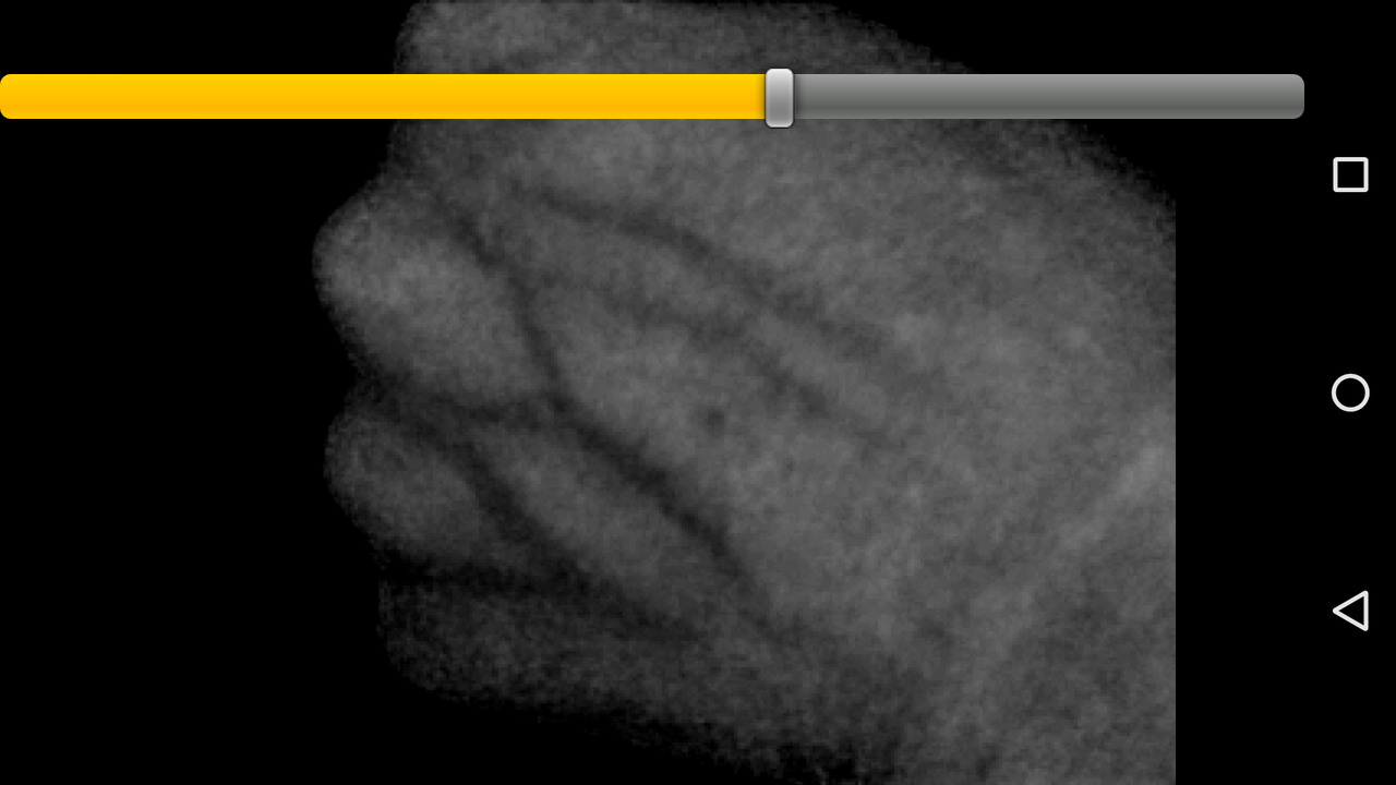 VeinSeek per Android è incredibilmente semplice. Flash dello smartphone sarà attivato sul aprire l'applicazione. Punta il telefono presso il sito che si desidera immagine. È possibile regolare la profondità dell'effetto utilizzando la barra di scorrimento. È inoltre possibile attivare l'effetto on e off con l'interruttore nella parte superiore dello schermo. Questo è tutto! Felice vena-finding!