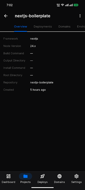Che tu gestisca un portfolio personale o applicazioni aziendali, Vercel Manager ti offre gli strumenti necessari per tenere sotto controllo il tuo flusso di lavoro, ovunque e in qualsiasi momento.