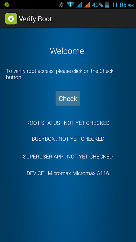 Root Verifier is a free software: By using verify root you can check your android phone is rooted or not.