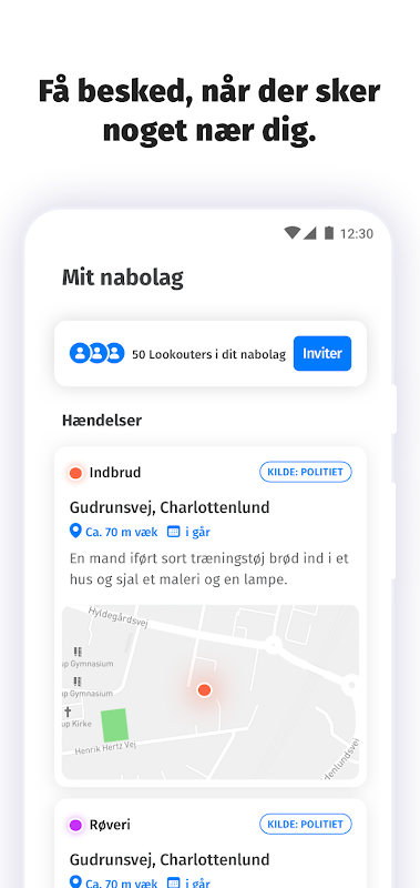 Verisure Watch scansiona i rapporti giornalieri della polizia, le pagine di notizie e raccoglie le osservazioni degli utenti e ti avvisa immediatamente.