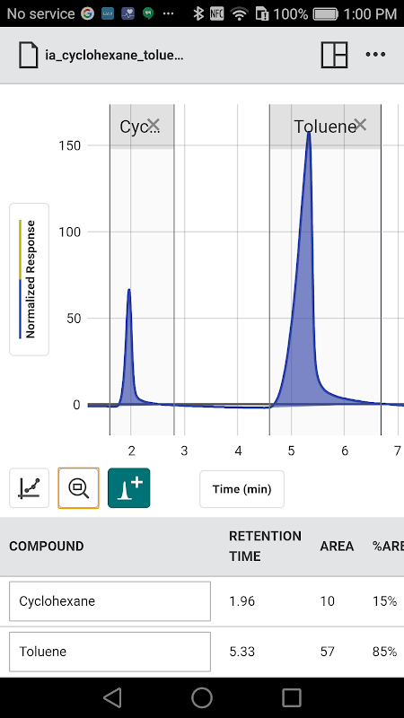 Gli studenti possono raccogliere un gascromatogramma da Vernier Mini GC, Mini GC Plus e Go Direct Mini GC. Possono anche determinare l'area di picco e integrare i picchi.