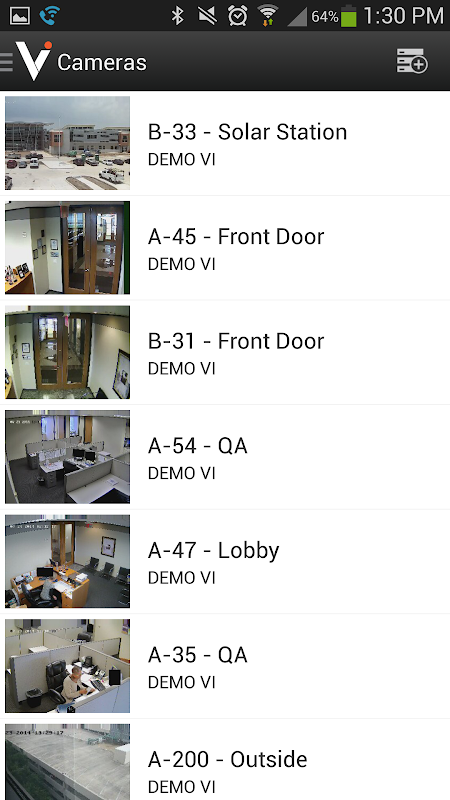 VIMobile is a video management system application that allows users to access live and recorded video from a server running the Video Insight IP Enterprise service. Authorized users can view high frame-rate, full-resolution video, as well as control pan-tilt-zoom camera functions. The app can automatically import additional servers settings across a larger network, providing users with easy access to groups of cameras via predefined layouts. Users can also watch recorded video for specific times, view facility maps, and perform security functions such as locking or unlocking doors. Authentication and authorization is controlled by the Video Insight Server and features robust integration with Active Directory/LDAP users and groups.