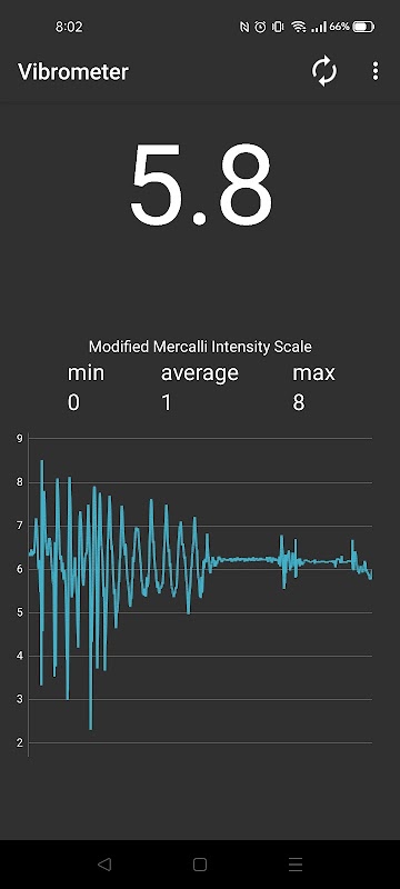 This vibrometer app uses the Modified Mercalli Intensity Scale to show vibration levels.