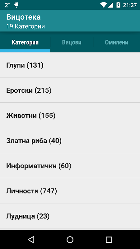 Read of-line more than 4500 jokes in Macedonian language from the best jokes web site in Macedonia vicoteka.mk. Read joke of the day, favorite jokes, share with your friends or browse jokes by categories. Update for new new jokes every once in a while.