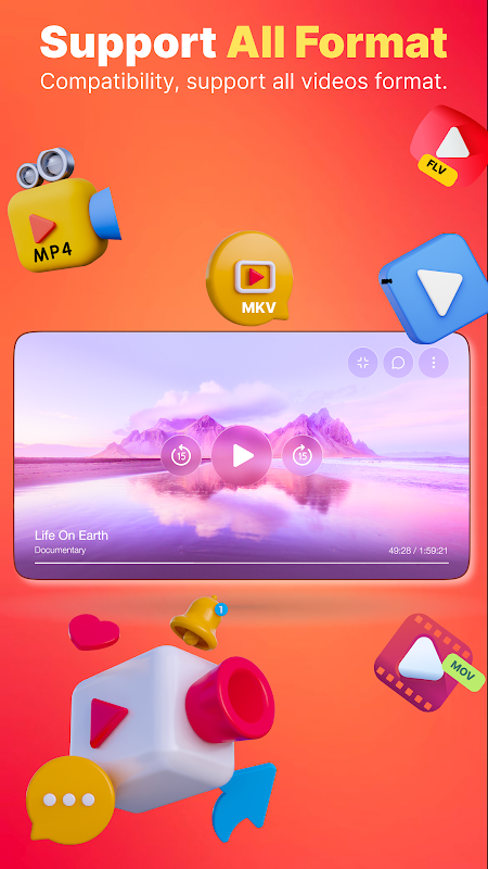 Experience movies and videos in a breathtaking clarity with the 4K Video Player even without internet. The 4K Video Player▶ supports all formats to ensure that you can enjoy your media files without any hassle. Witness every detail on your screen come to life with vivid colors in the HD Video Player ▶. Enjoy crystal clear video play back using the MP4 Player. 🎥