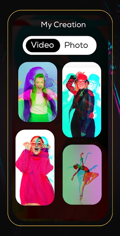 Effetto glitch video e foto - Applicazione effetto glitch fotocamera, puoi applicare facilmente l'effetto glitch su video e foto. Basta selezionare uno degli effetti Glitch e tenere premuto per applicarlo nella registrazione video, scattando foto. Inoltre, potenti strumenti di editing fanno brillare i tuoi video o le tue immagini.