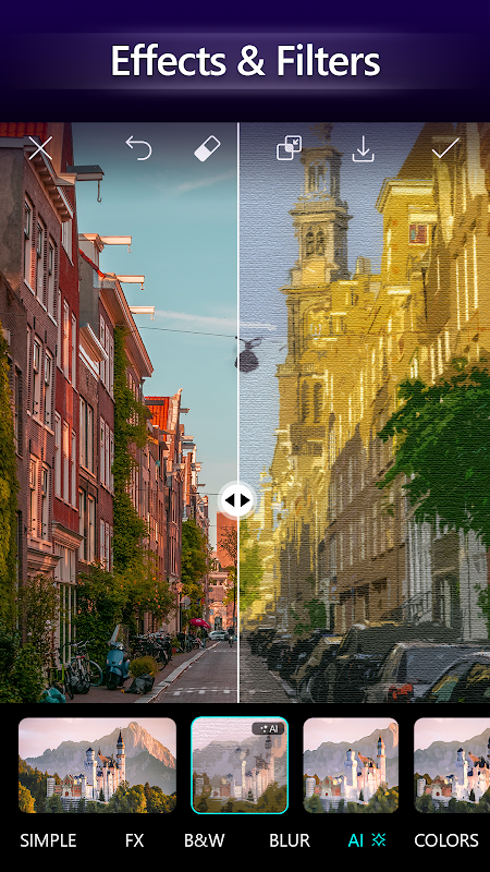 Effetti video e filtri: MasterCut offre una vasta gamma di effetti video e filtri per migliorare l'aspetto visivo dei tuoi video. Gli utenti possono applicare vari effetti come transizioni, sovrapposizioni, color grading ed effetti speciali come il rallentatore o la riproduzione inversa. Inoltre, l'app include una raccolta diversificata di filtri che possono essere applicati per ottenere stati d'animo o stili specifici.