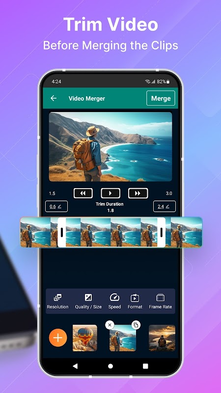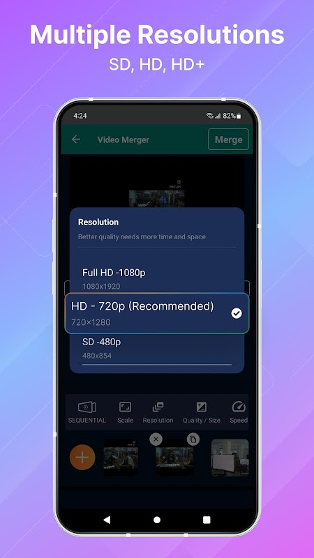 Questa applicazione di unione video supporta la combinazione di formati, bitrate e frame rate diversi in un unico video. Inoltre, ridimensiona video diversi in un'unica scala e li unisce. Unisce o combina anche video con risoluzioni diverse in un unico video.