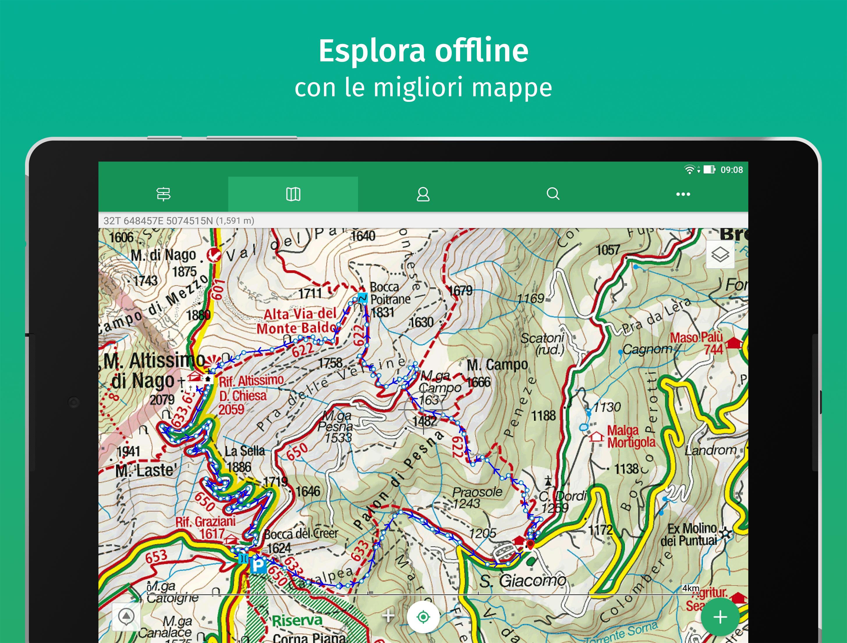 Cartografia per ogni attività outdoor, registra tracce GPS e naviga i percorsi