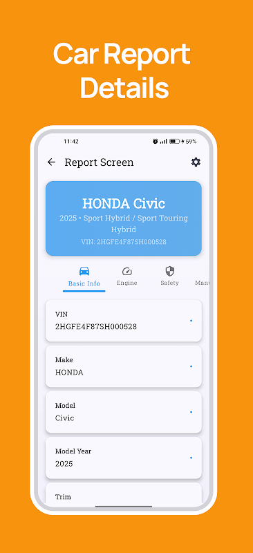 Scansiona facilmente i codici VIN per ottenere immediatamente dettagli e resoconti storici sull'auto.