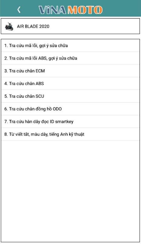 Applicazione per cercare, suggerire di riparare motocicli di vietnamiti