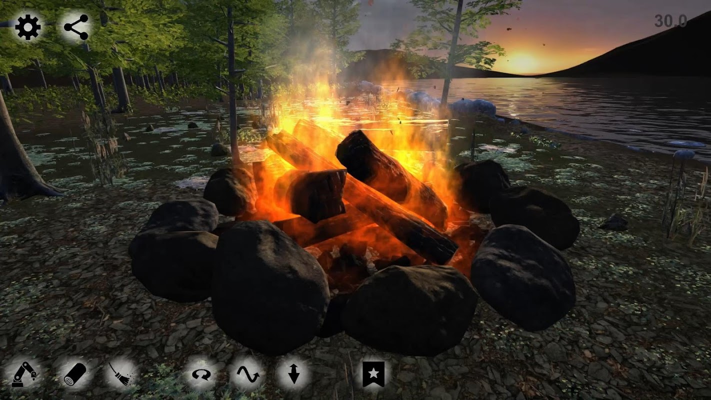 Note: You need the latest high end android device. Development is done on Sony Xperia 1 II. Compute Shader and SSBO (Shader Storage Buffer Object) functions are required. The Xperia 1 II is working fine under heavy load. I confirmed the operation with Xperia XZ, but it is quite heavy and there is a bug in drawing the sparks, so turn off the display of the sparks. If your device is heavy but can operate, you can also enjoy the bonfire itself if the forest and lake drawings are turned off.